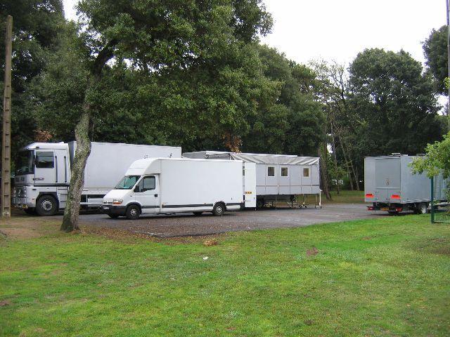 camion équipé en cuisine professionnelle et un camion contenant le matériel nécessaire tels que les barnums (tentes de réception), les tables et chaises, les chauffages.